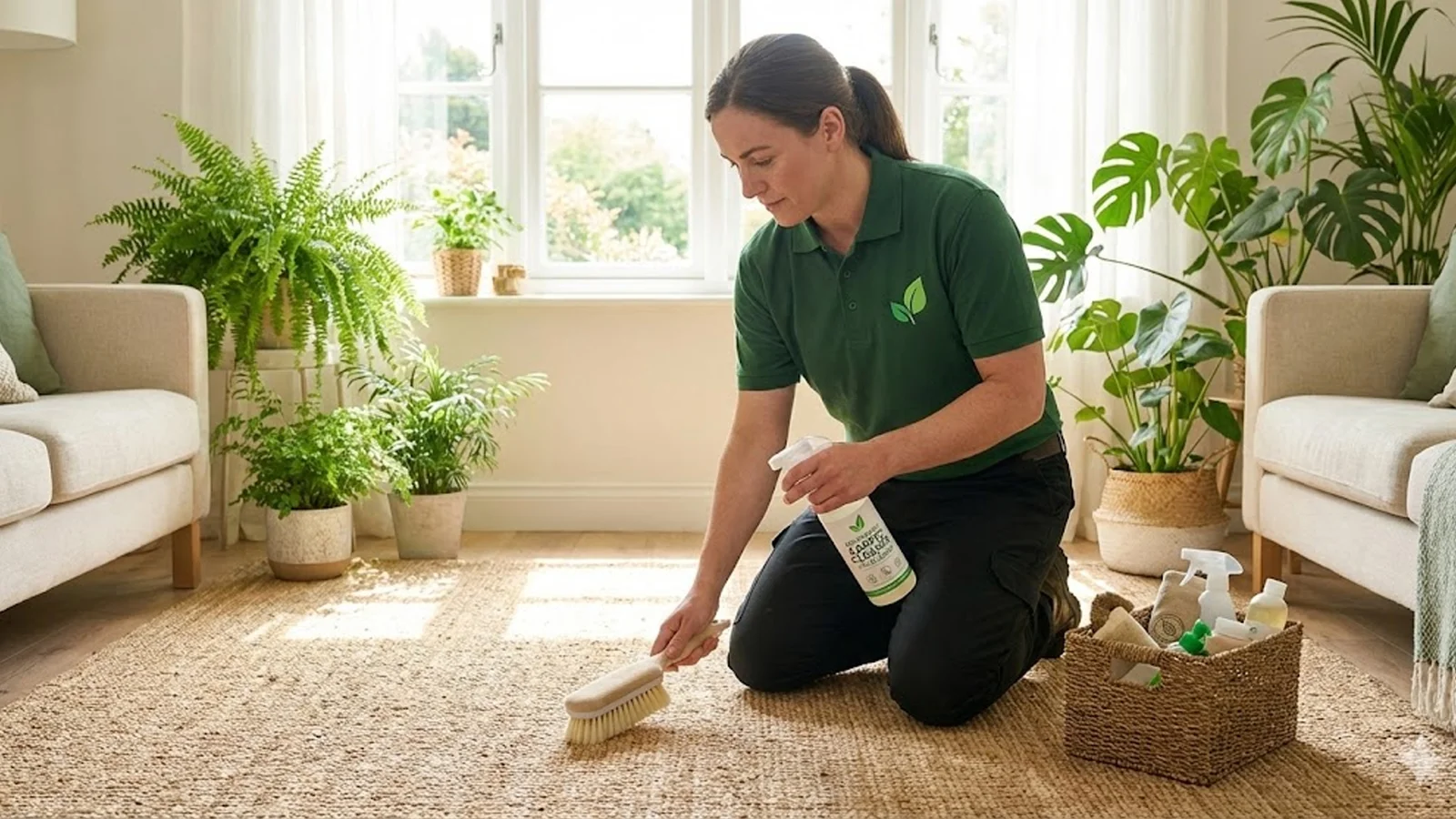 - Home carpet cleaning using green cleaning solutions
